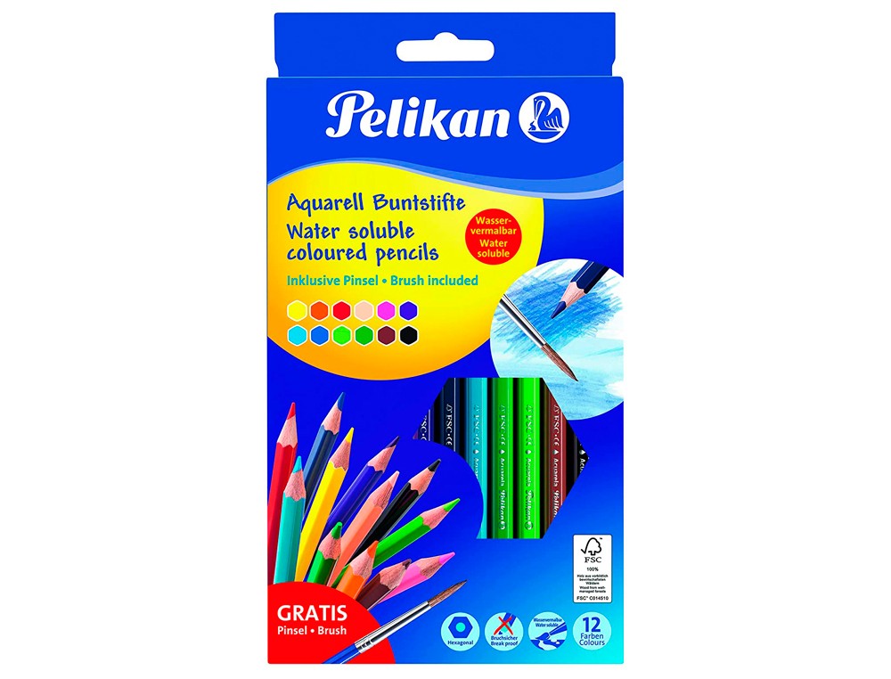 Lapices de colores pelikan hexagonales acuarelables mina 3mm caja de 12 colores surtidos