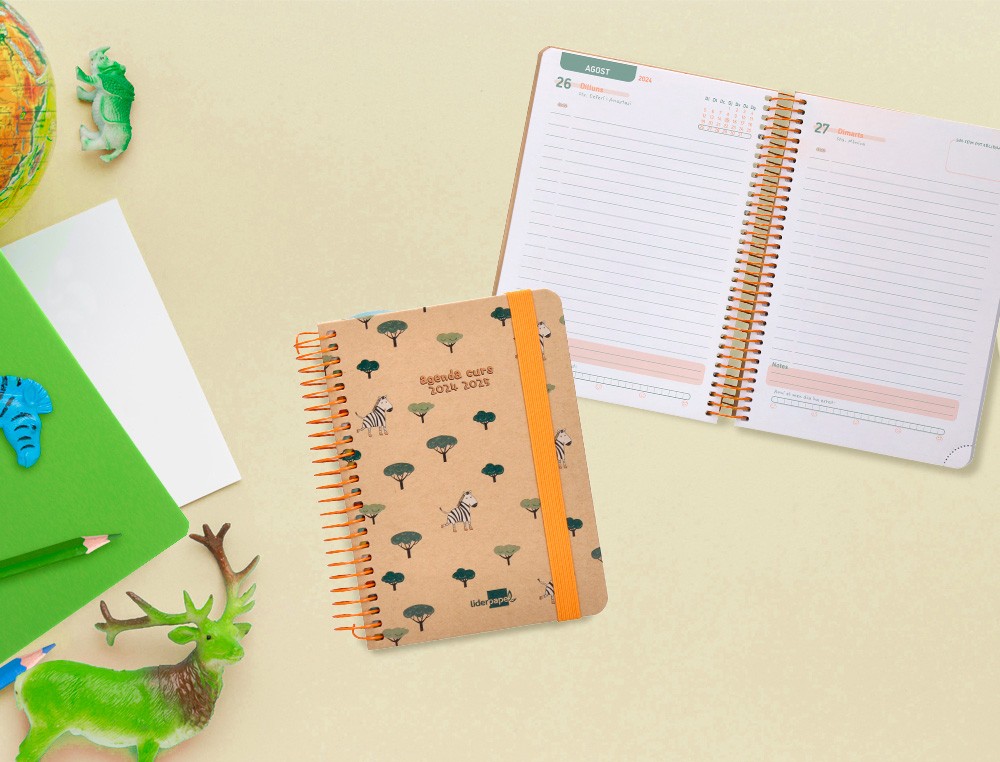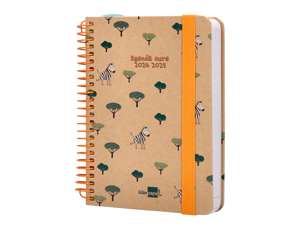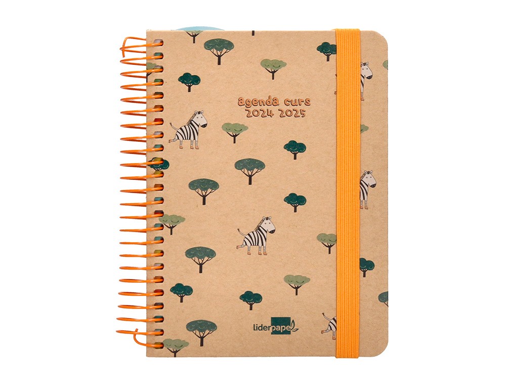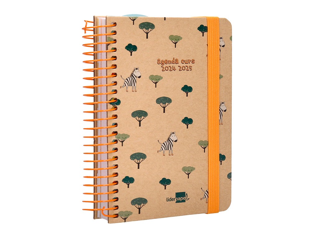 ¡Prepara tu año escolar con la Colección Agenda Escolar Classic de Liderpapel! Con su encuadernación de espiral de plástico y tapas de papel kraft, estas agendas ofrecen durabilidad y un toque de diversión a tu escritorio. Disponibles en una variedad de diseños y formatos: elige entre lengüa bilingüe (español-inglés) o tetralingüe (castellano-euskera-catalán-gallego) y la vista de día página o de 2 días página, según tus necesidades. El papel de alta calidad de 80 g/m² garantiza una experiencia de escritura suave, mientras que los cuatro diseños de portada estampados a juego con el color de la espiral harán que cada día sea una nueva aventura. Características: día página , A6, espiral de plástico a color , tapa cartón forrado eo en papel kraft, surtido estampado: smile, stars, zebra, crocodile, 8 uds, 80g/m², catalán, 3 hojas de pegatinas incluidas en día página, banda elástica, regla. ¡Descubre el resto de diseños y empieza cada día con una acias a la Colección Agenda Escolar Cl