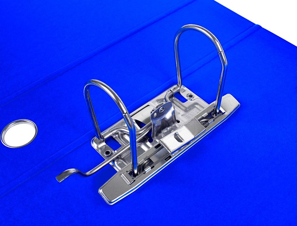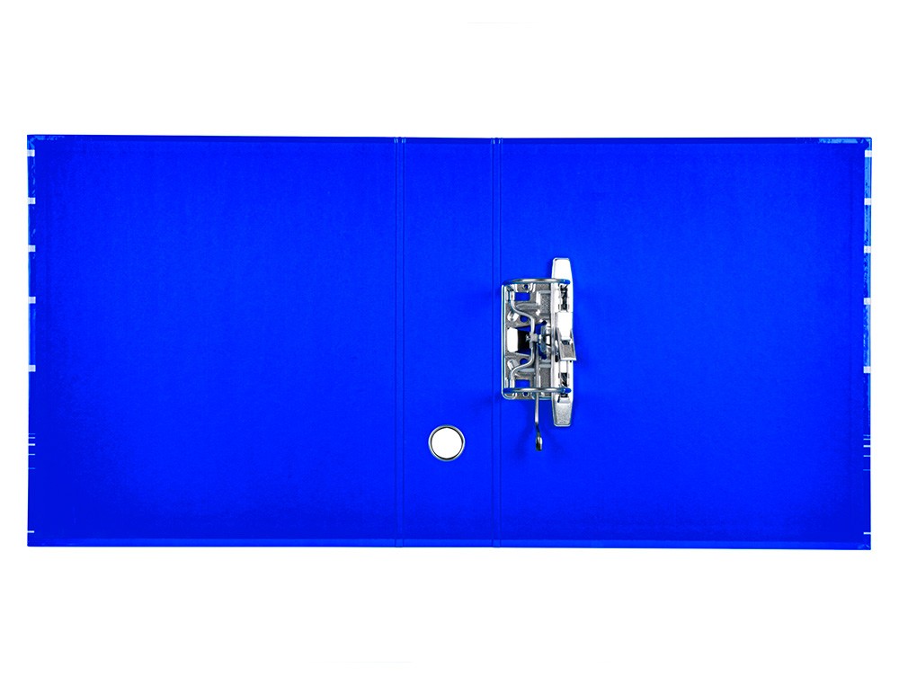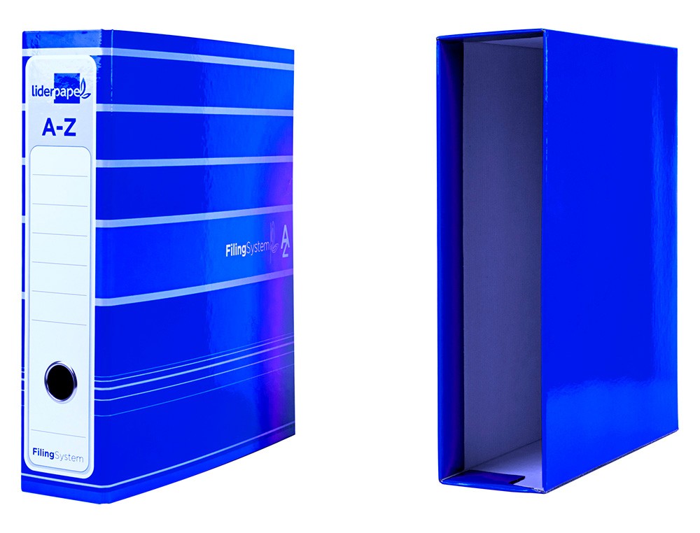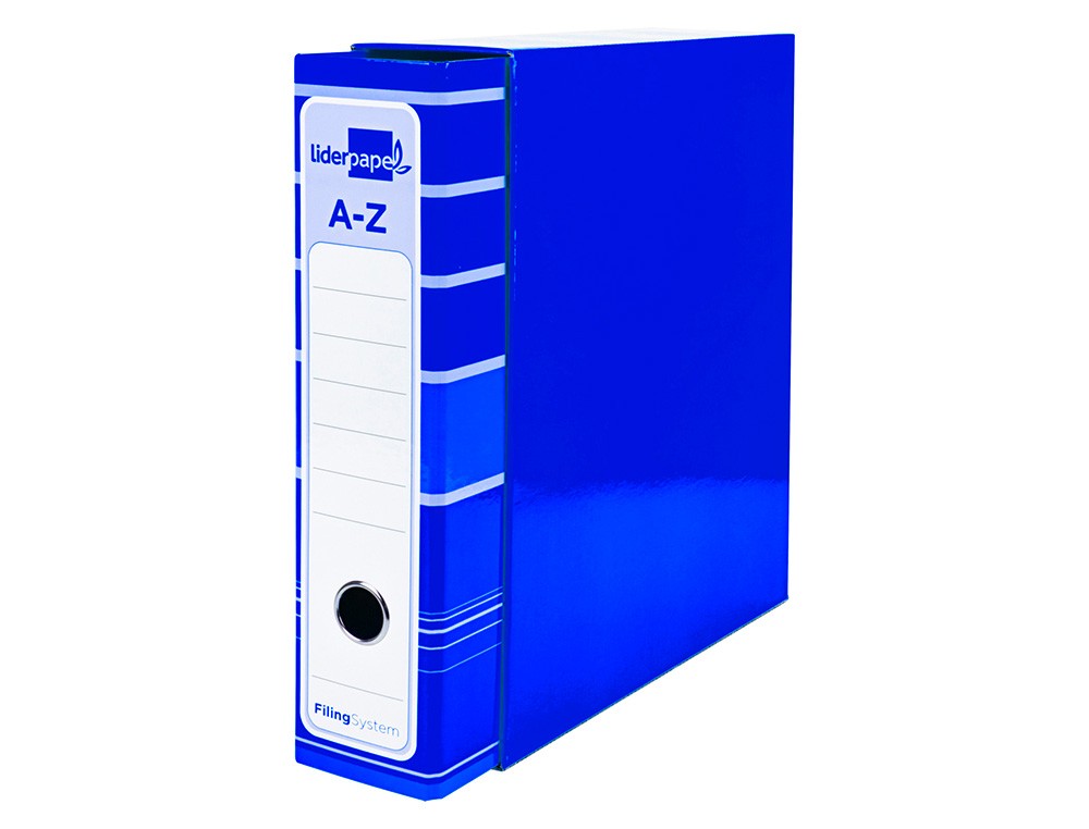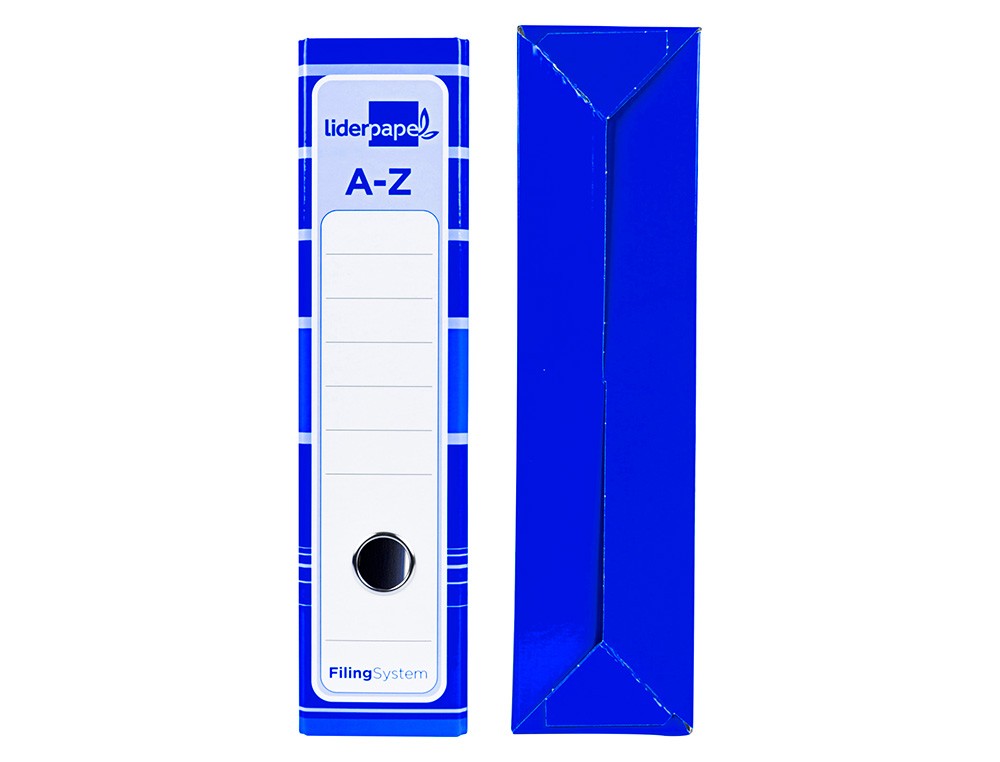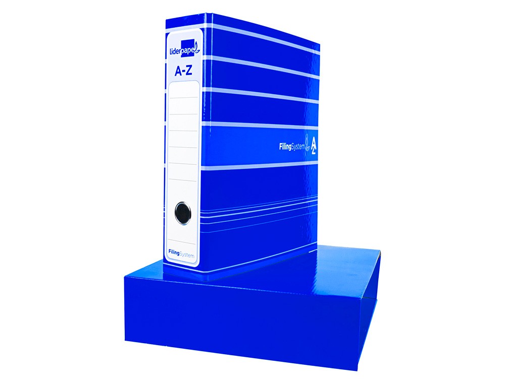 Archivador de palanca liderpapel a4 filing system forrado sin rado lomo 80mm azul con caja y compresor metalico