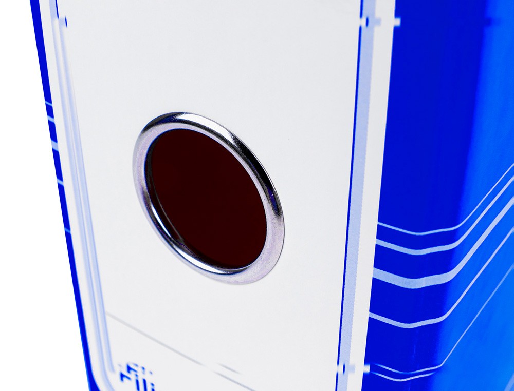 Archivador fabricado en cartón forrado de 1,9 mm de espesor, plastificado con caja. Mecanismo de palanca de 75 mm con ollao y compresor metálico. Ancho de lomo: 80 mm. Formato DIN A4. Medidas: 285 x 318 mm.