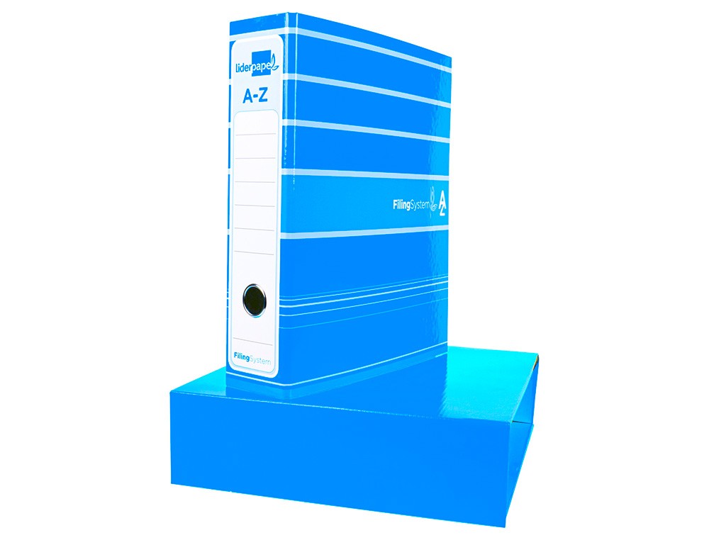 Archivador de palanca liderpap el a4 filing system forrado sin rado lomo 80mm celeste con caja y compresor metalico