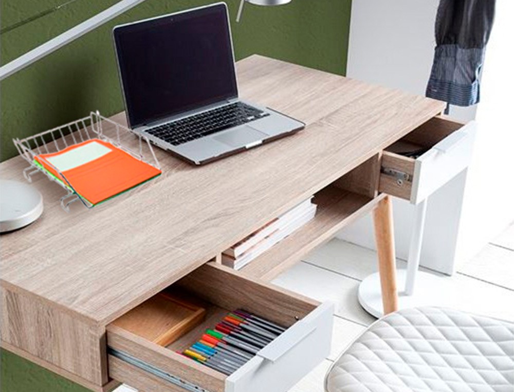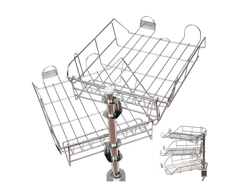 Bandeja de oficina metálica cromada. Con portatarjeta . Medidas: 275 x 90 x 370 mm.