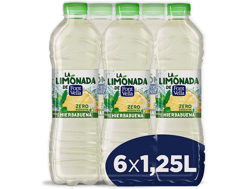 Agua mineral natural font vella lim0nada zero con zumo de limon botella 1,25 l