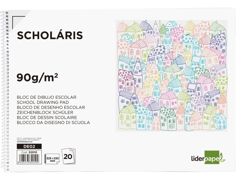 Bloc dibujo liderpapel escolar espiral 230x325mm 20 hojas 90 gr/m2 con recuadro
