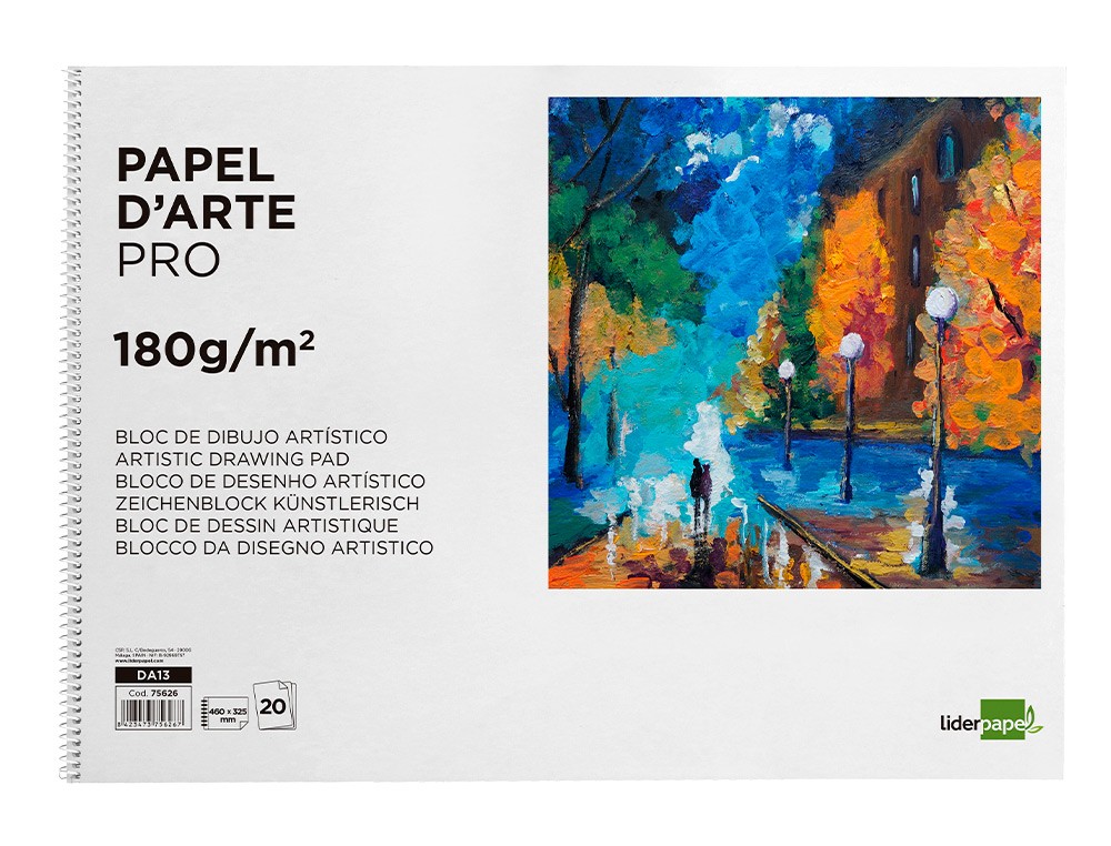 Bloc dibujo liderpapel artistico espiral 460x325mm 20 hojas 180gr/m2 sin recuadro perforado