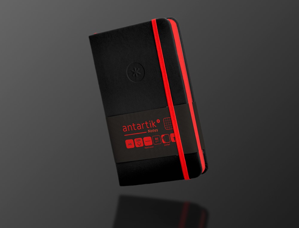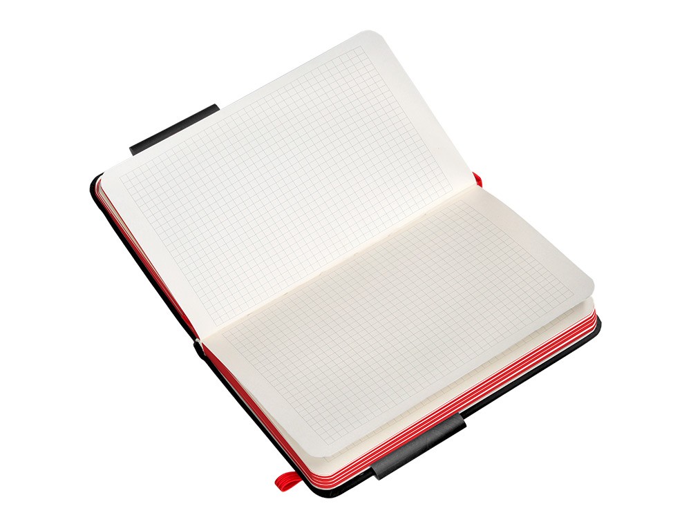 Cuaderno con gomilla antartik notes tapa dura a6 hojas cuadricula negro y rojo 100 hojas 80 gr fsc