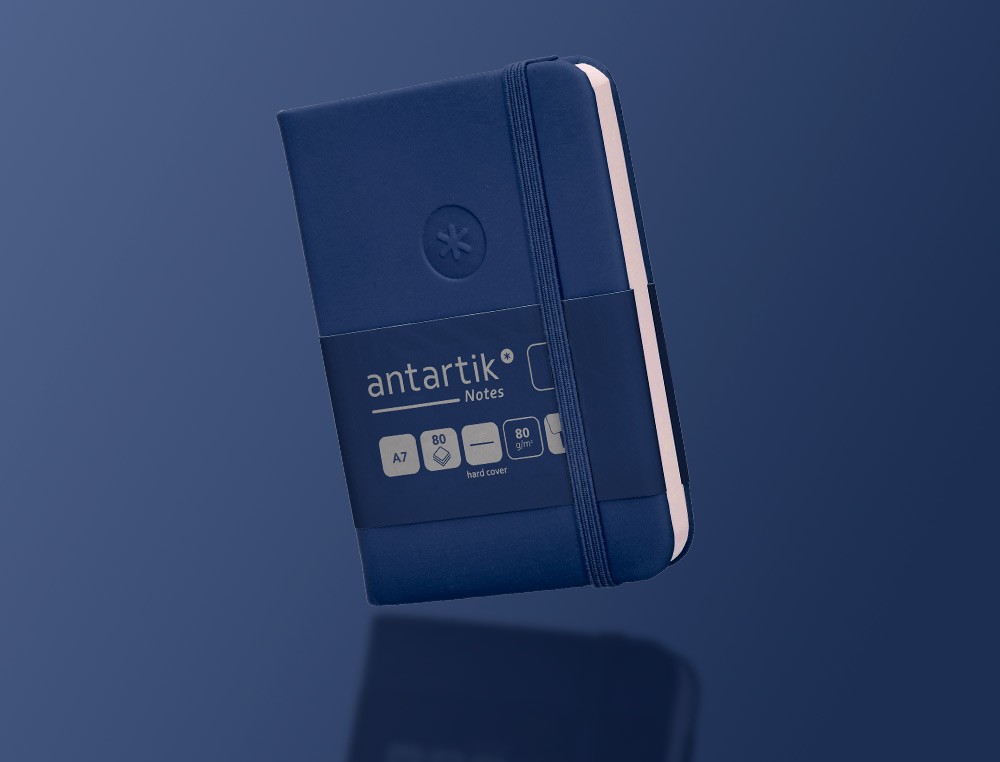 Cuaderno con gomilla antartik notes tapa dura a7 hojas lisas azul marino 80 hojas 80 gr fsc
