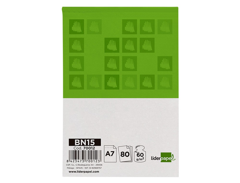 Bloc notas liderpapel cuadro 4 mm a7 80 hojas 60 g/m2 perforado sin tapa