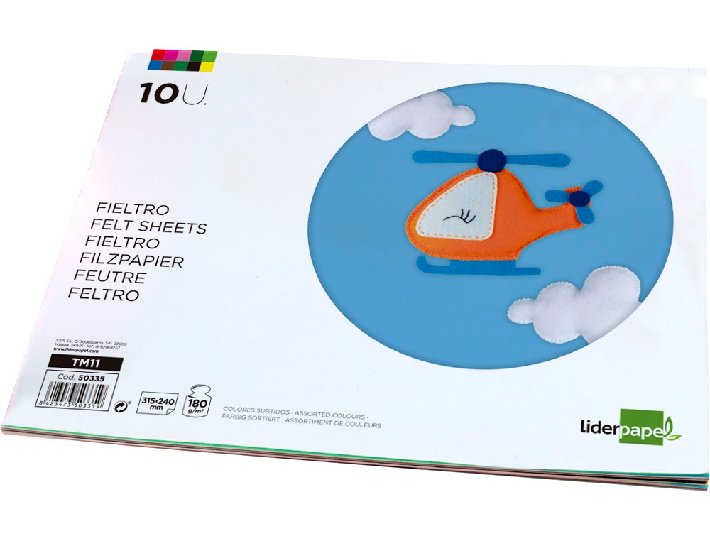 Bloc trabajos manuales liderpapel fieltro 240x315mm 10 hojas colores surtidos