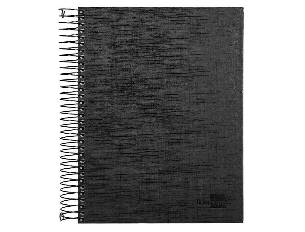 Cuaderno espiral liderpapel a5 micro papercoat tapa forrada 140h 75 gr cuadro5mm 5 bandas 6 taladros negro