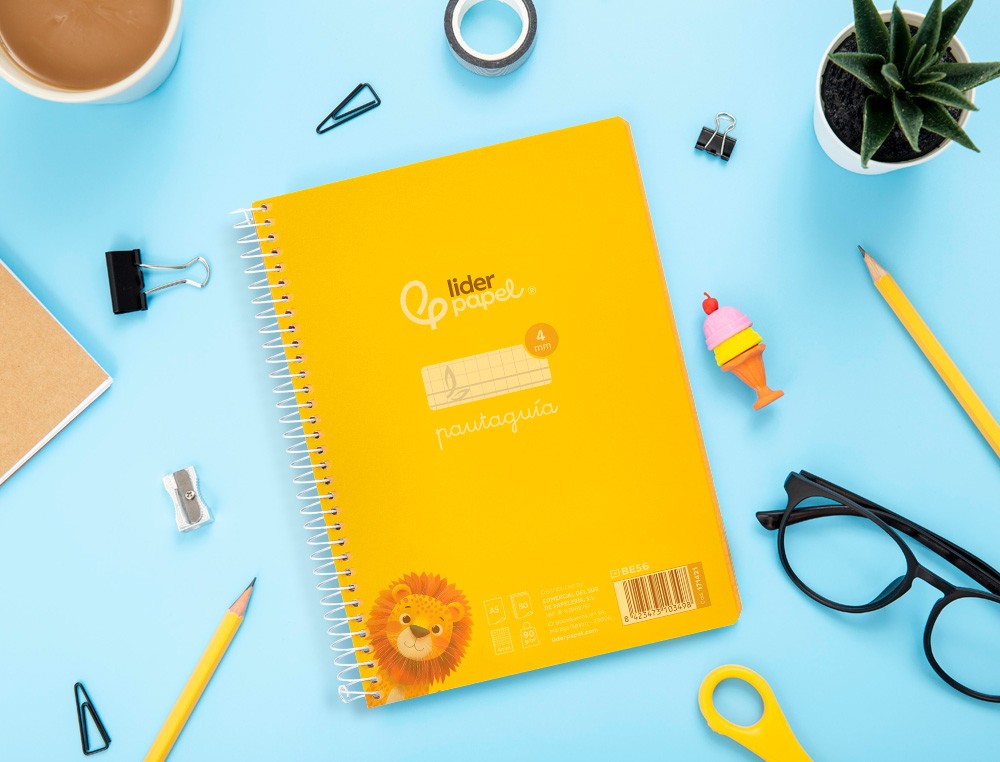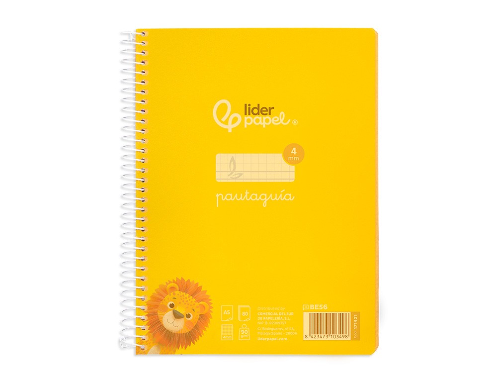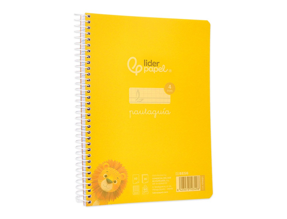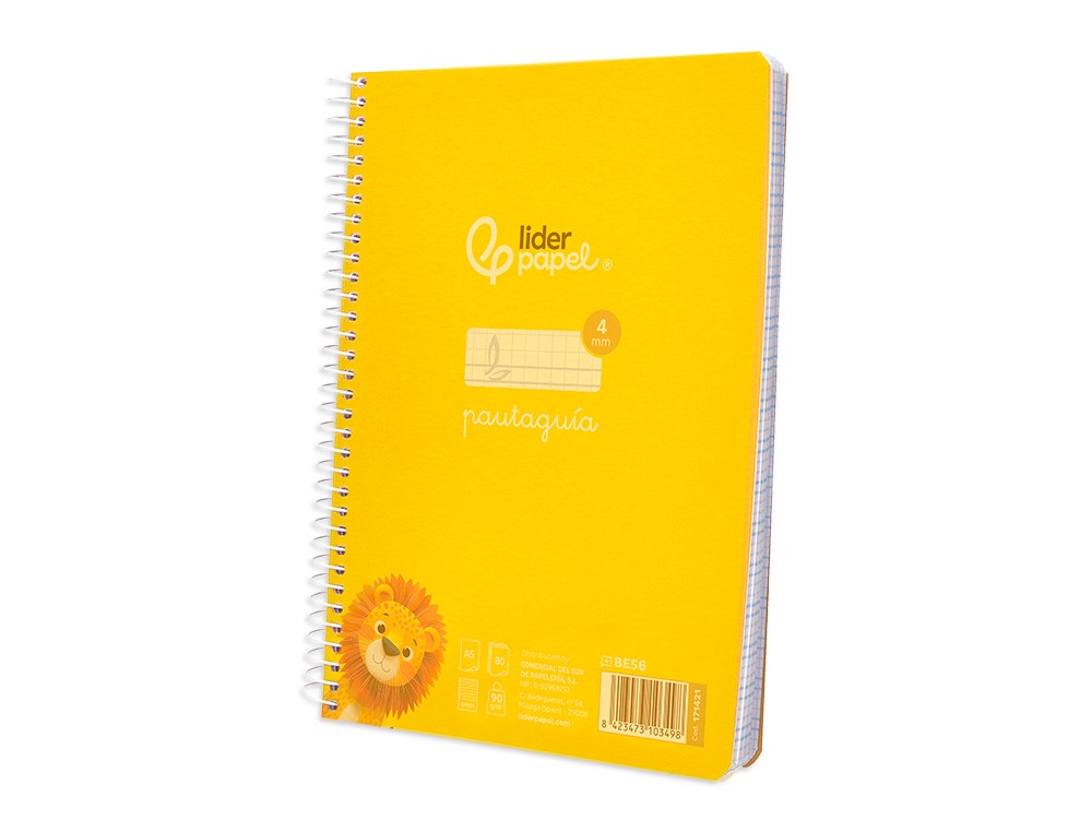 Cuaderno espiral liderpapel din a5 pautaguia tapa plastico 80h 90gr cuadro pautado 4mm con margen color amarillo