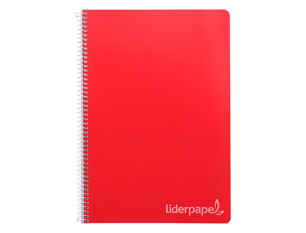 Tapa de cartón de 800 g/m² contracolado, impresa y plastificada mate. Gran resistencia y rigidez. Papel de 75 g/m². Espiral nylonizada. Coil-lock. Colores surtidos.