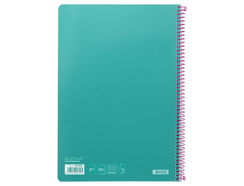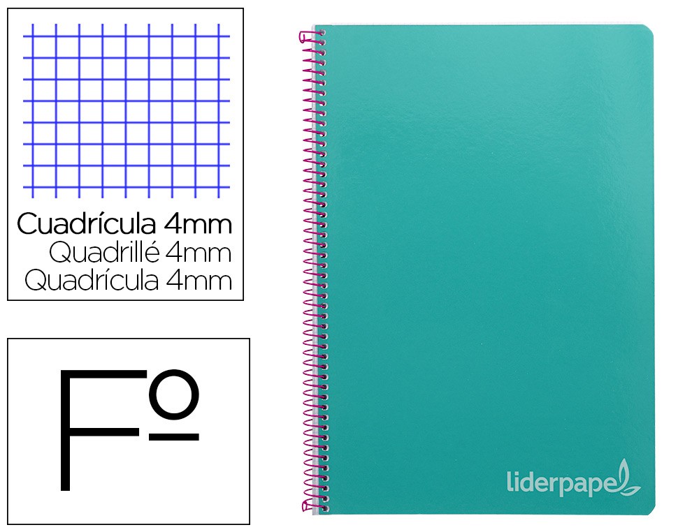 Cuaderno espiral liderpapel folio witty tapa dura 80h 75gr cuadro 4mm con margen color turquesa