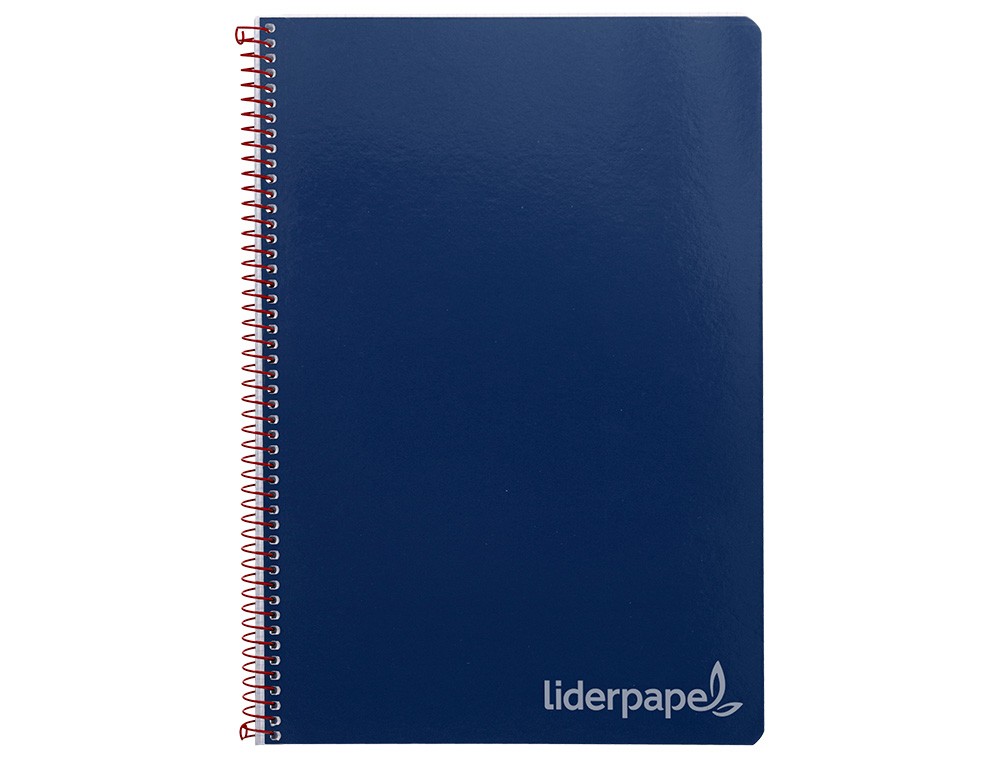 Tapa de cartón de 800 g/m² contracolado, impresa y plastificada mate. Gran resistencia y rigidez. Papel de 75 g/m². Espiral nylonizada. Coil-lock. Colores surtidos.