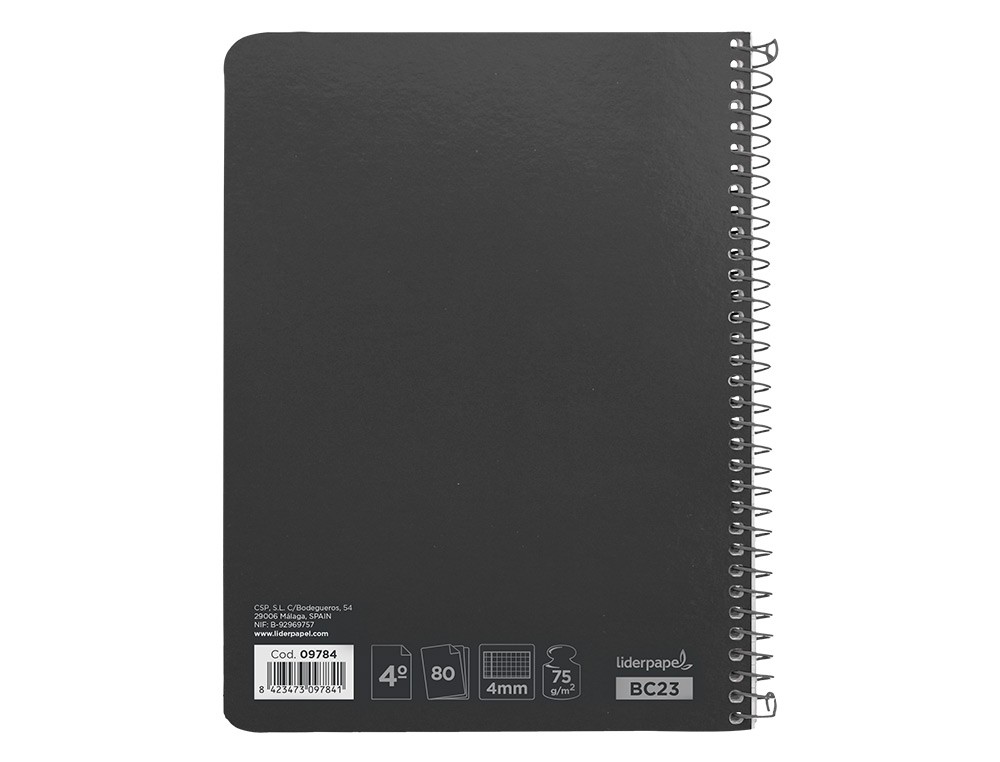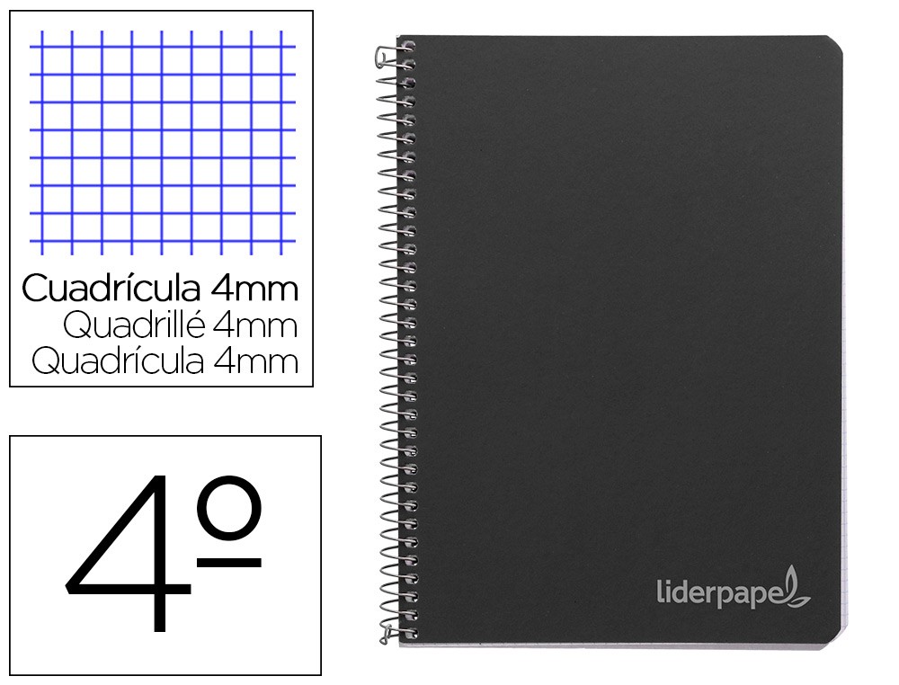 Cuaderno espiral liderpapel cuarto witty tapa dura 80h 75gr cuadro 4mm con margen color negro