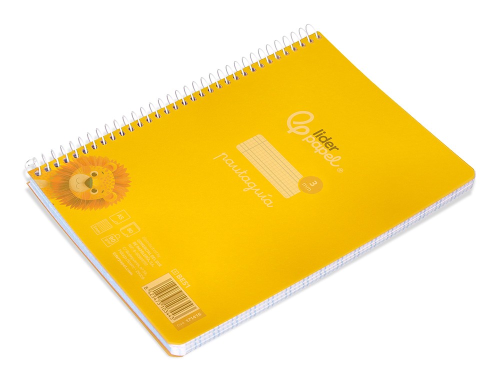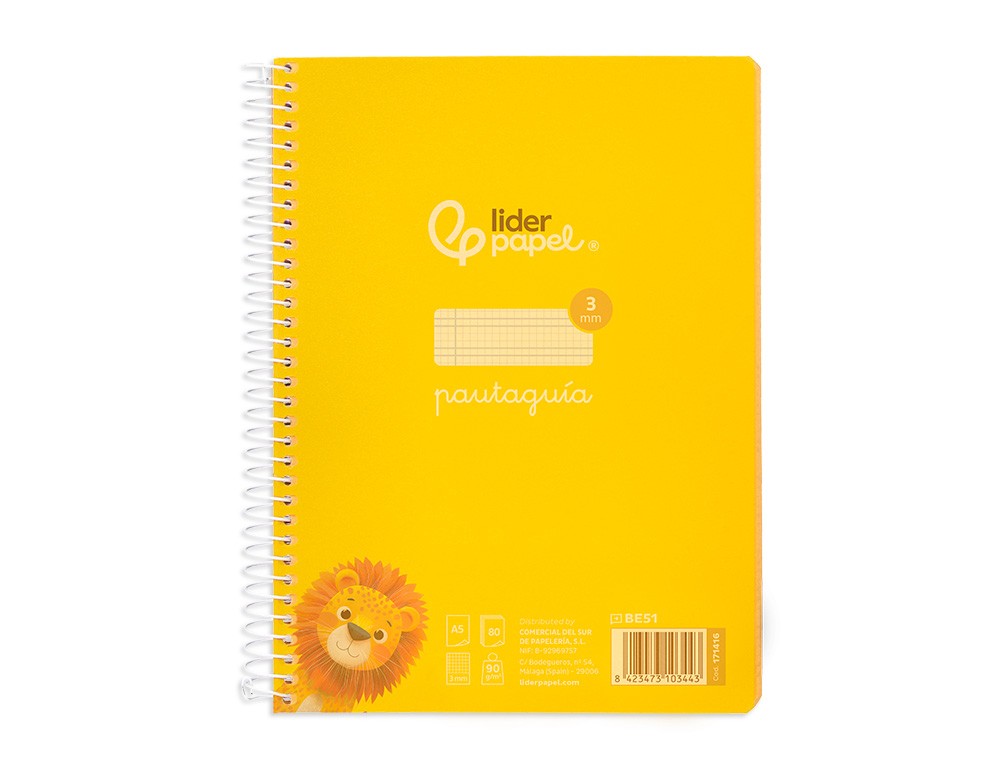 Cuaderno espiral liderpapel din a5 pautaguia tapa plastico 80h 90gr cuadro pautado 3 mm con margen color amarillo