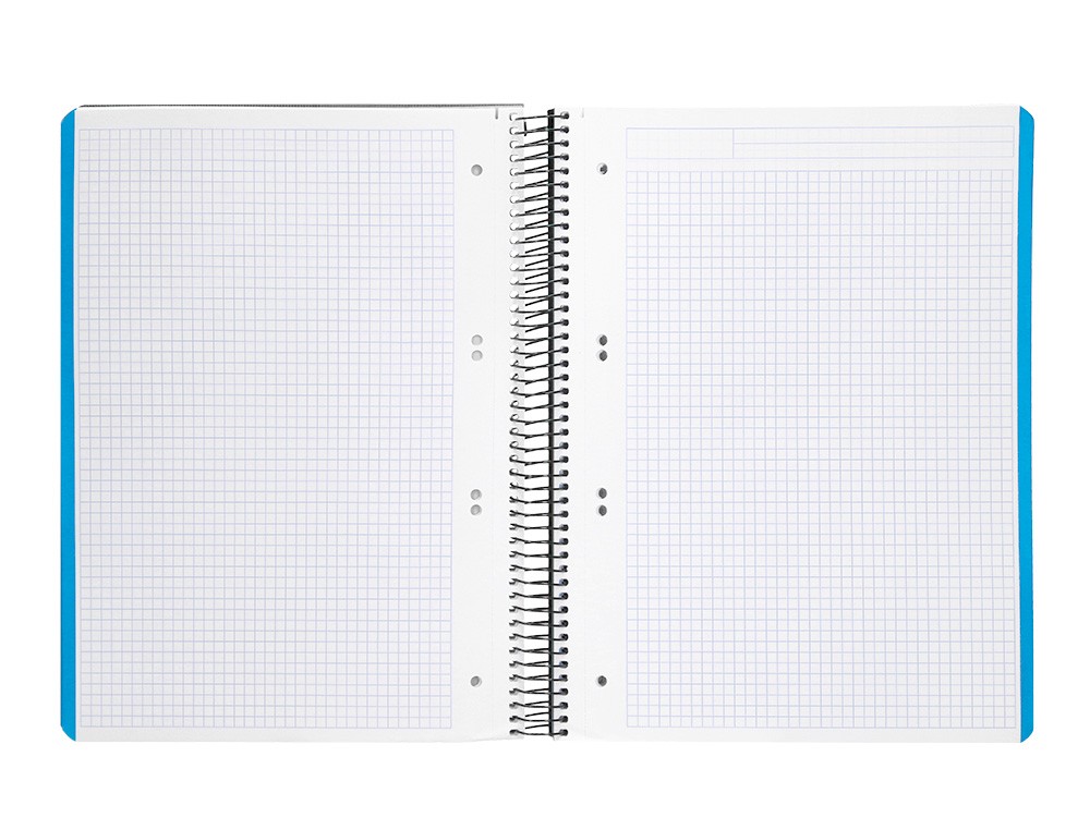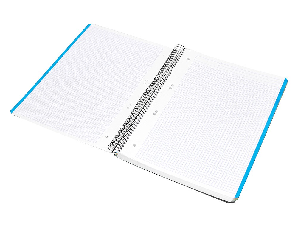 Tapa de polipropileno opaco de 600 micras impreso, que proporciona mayor duración y flexibilidad al cuaderno. Papel de 90 g/m².