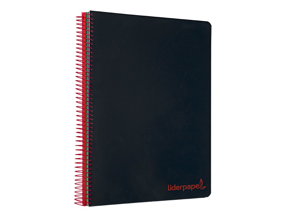 Cuaderno espiral liderpapel a5 micro wonder tapa plastico 120h 90g cuadro 5mm 5 bandas 6 taladros color negro