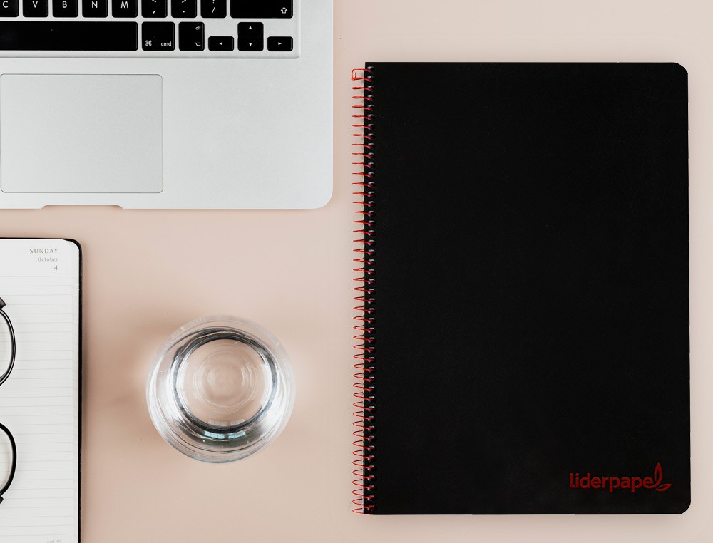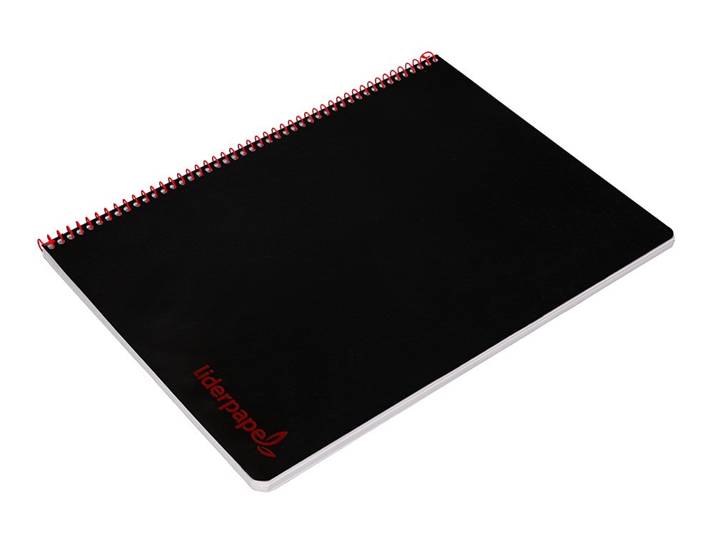 Tapa de polipropileno opaco de 600 micras impreso, que proporciona mayor duración y flexibilidad al cuaderno. Papel de 90 g/m².