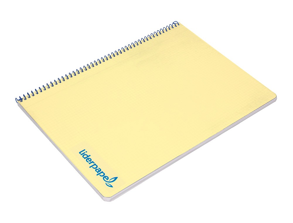 Tapa de polipropileno opaco de 600 micras impreso, que proporciona mayor duración y flexibilidad al cuaderno. Papel de 90 g/m².