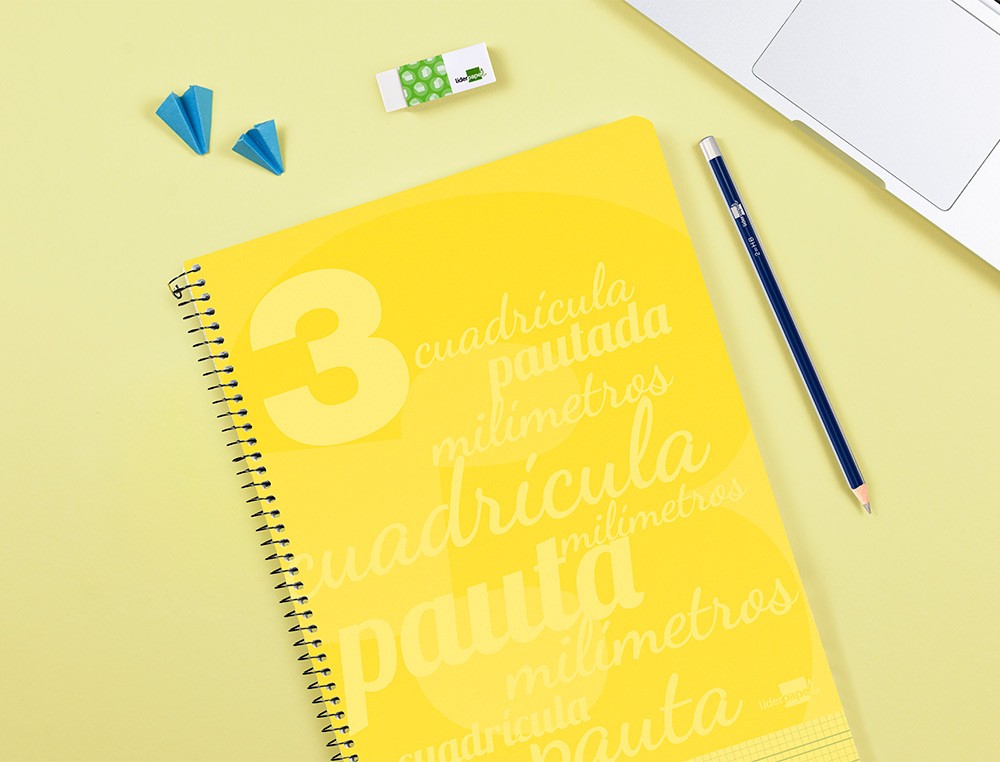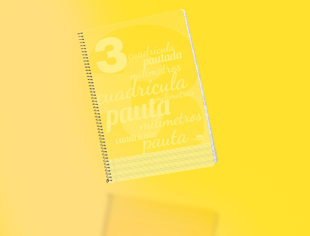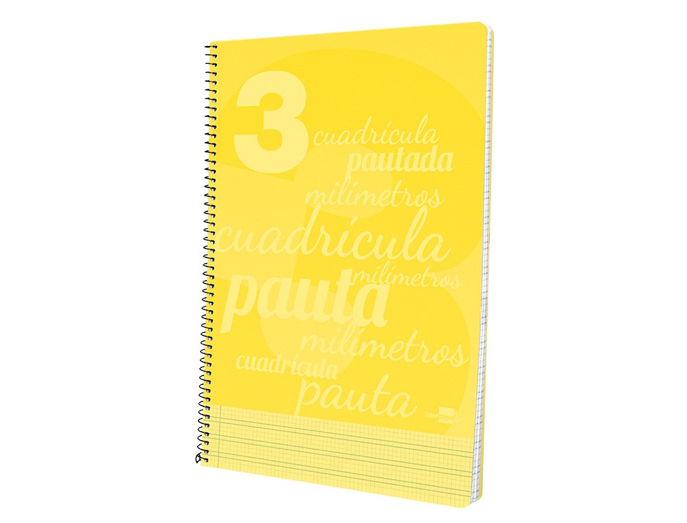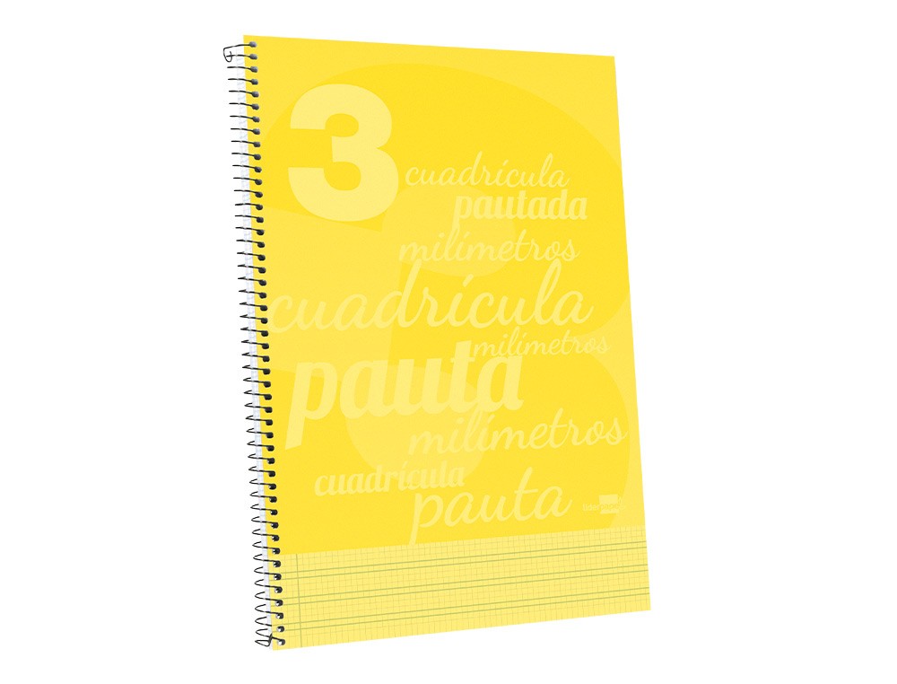 Cuaderno espiral liderpapel folio pautaguia tapa plastico 80h 75gr cuadro pautado 3mm con margen color amarillo