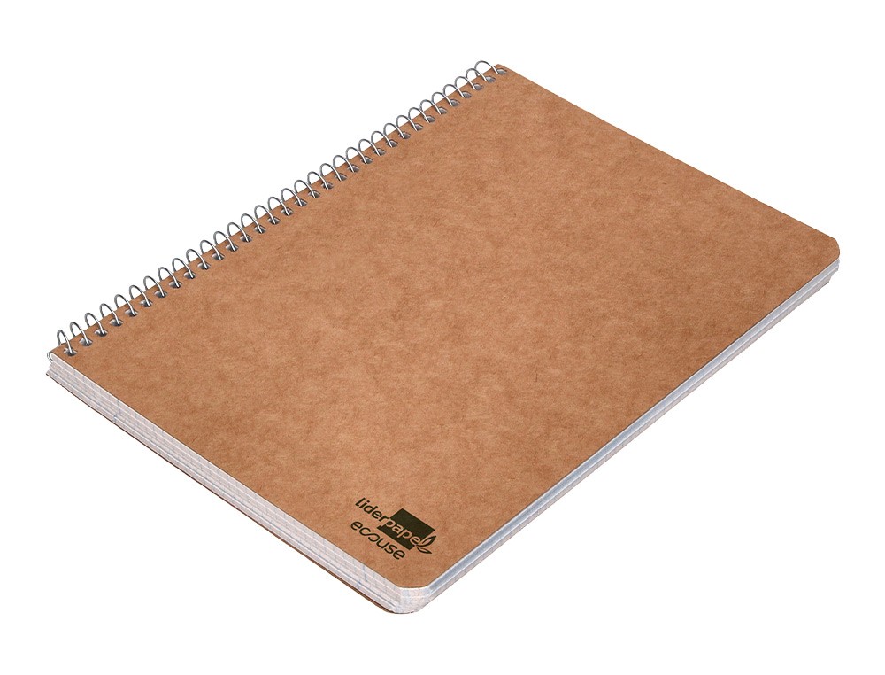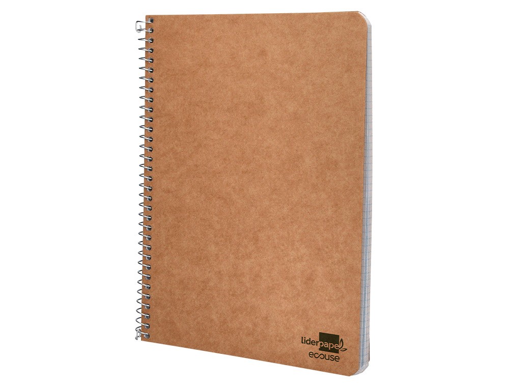 Cuaderno espiral liderpapel cuarto ecouse tapa cartulina kraft 80h papel reciclado 80 grcuadro 4mm