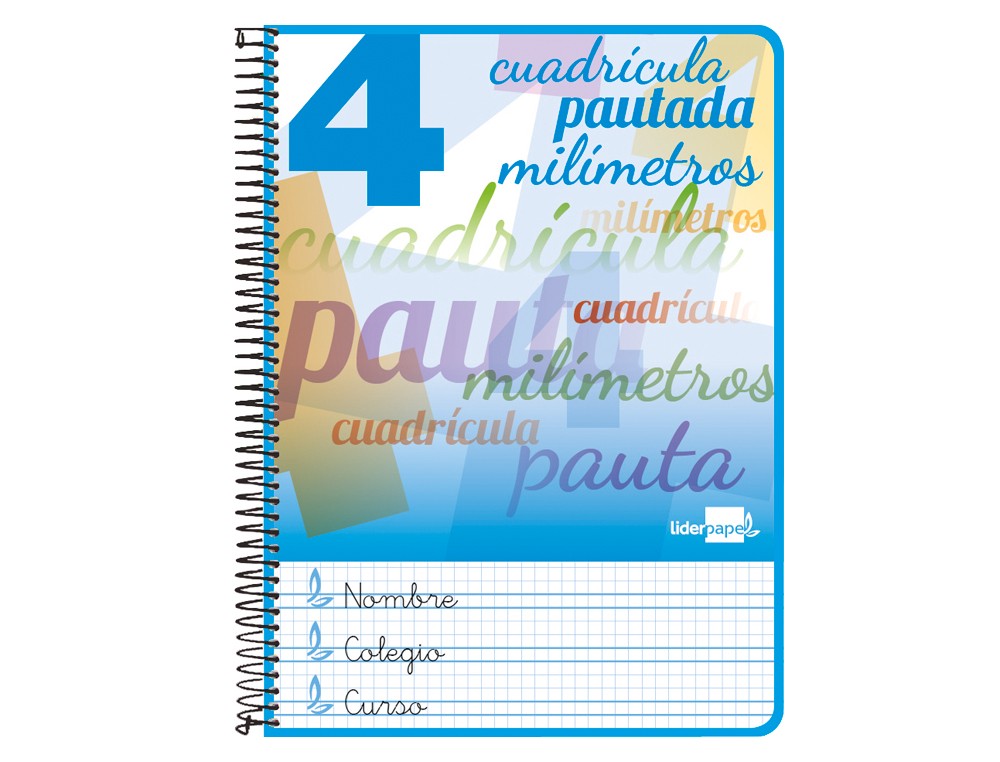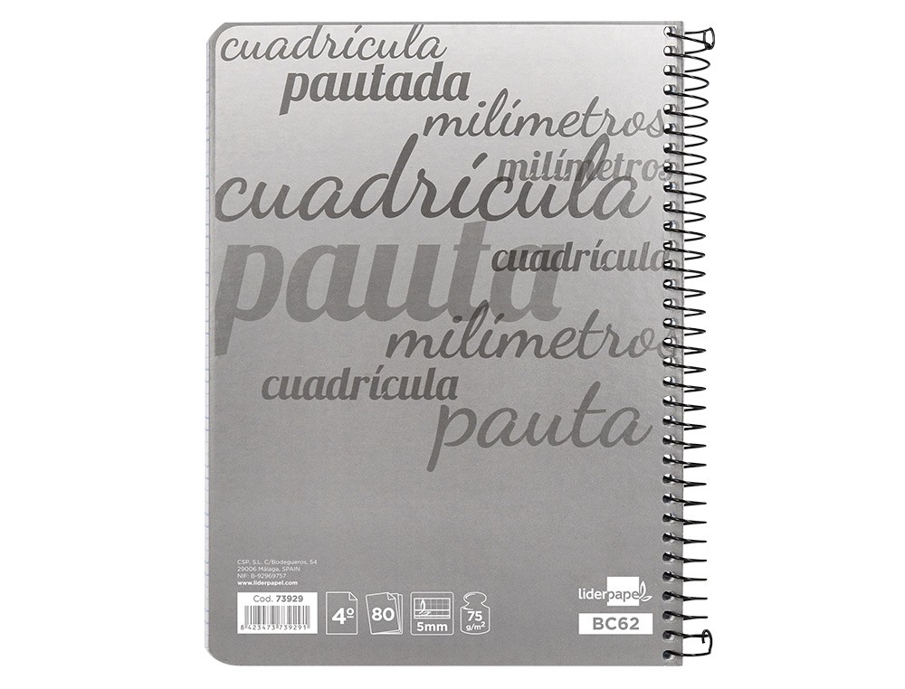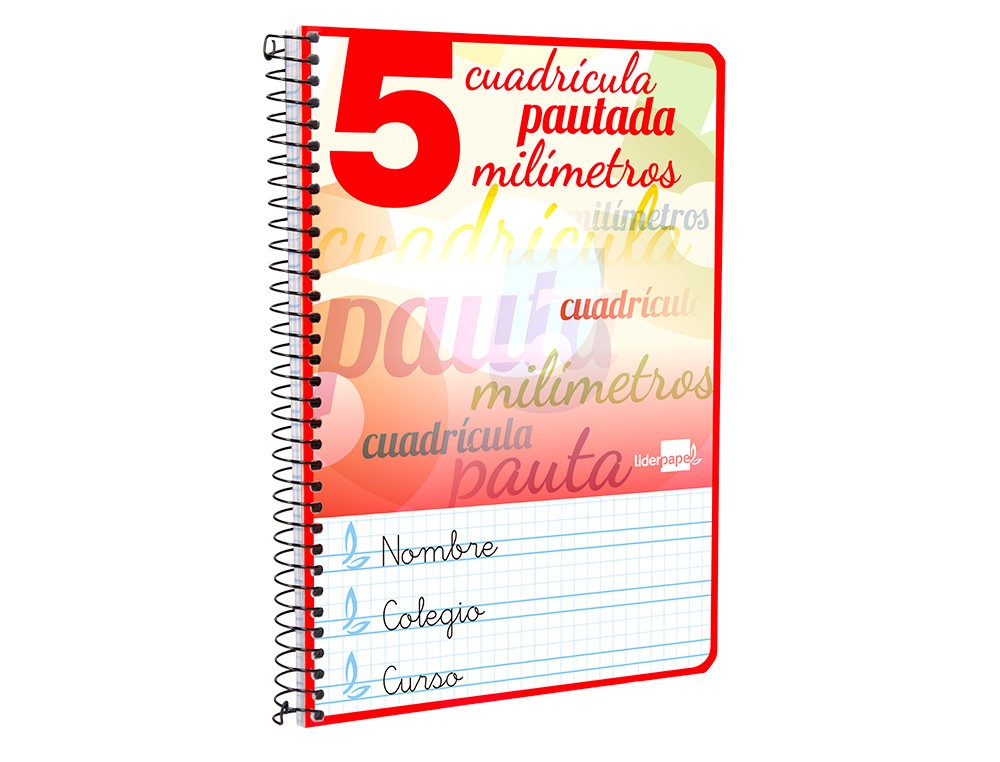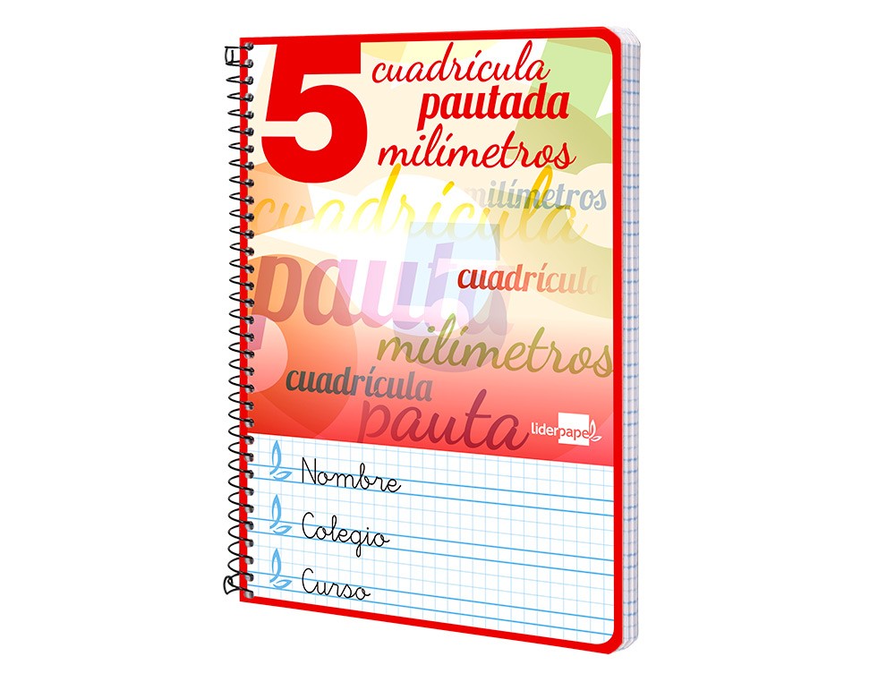 Cuaderno espiral liderpapel cuarto pautaguia tapa dura 80h75 gr cuadro pautado 5mm con margen