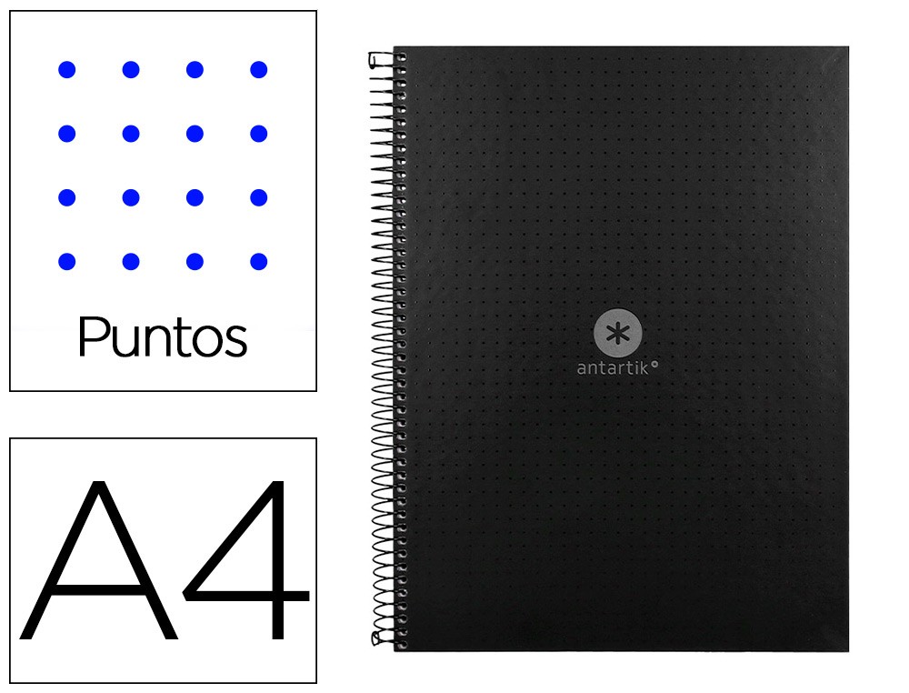 Cuaderno espiral a4 micro antartik dots tapa forrada 80h 90 gr rayado puntos 1 banda 4 taladros negro