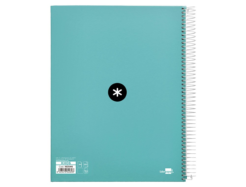 Cuaderno espiral a4 micro antartik tapa forrada 120h 90 gr liso 5 bandas 4 taladros color menta