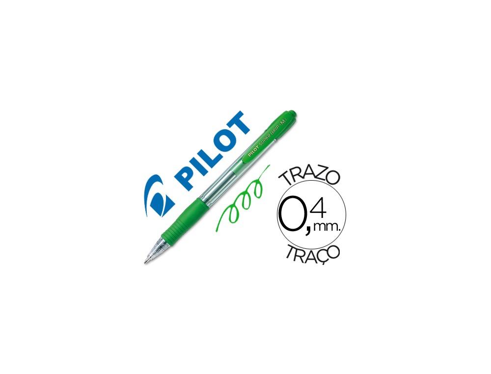 Boligrafo pilot super grip verde retractil sujecion de caucho tinta base de aceite