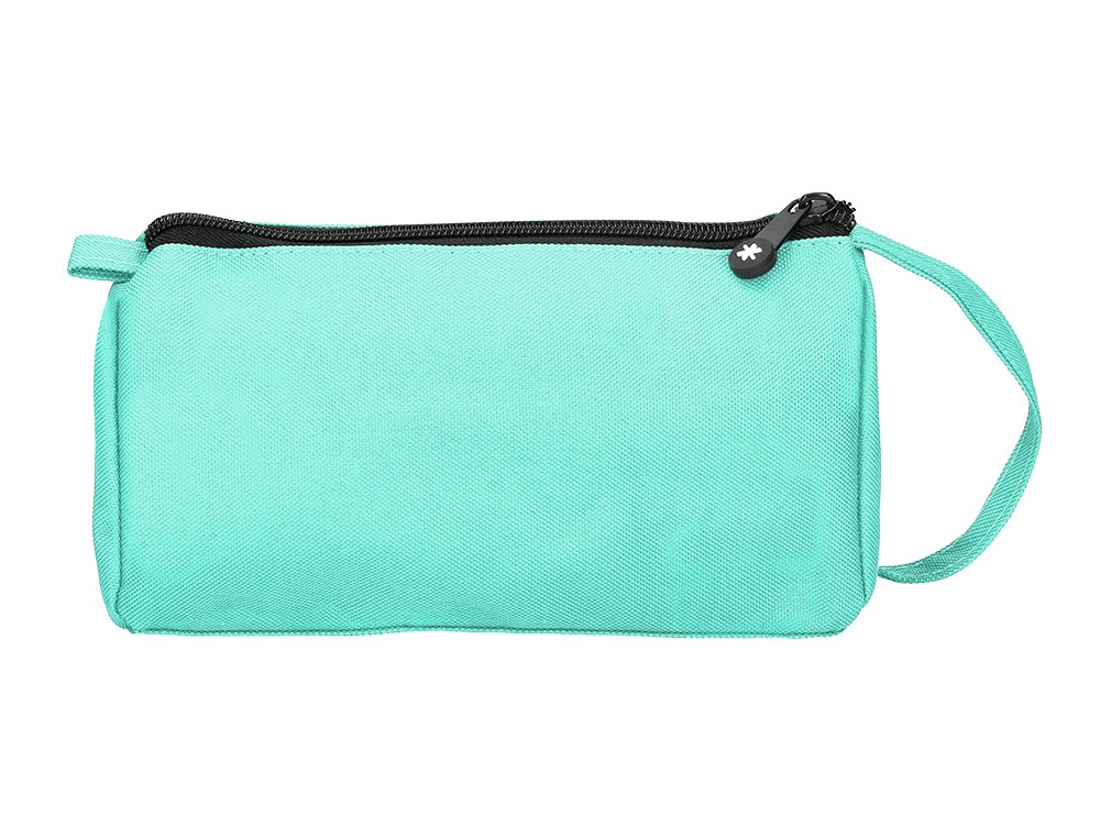 Bolso escolar portatodo Antartik con compartimento principal de gran formato con cremallera,bolsillos interiores laterales, solapa frontal con cremallera con acceso al interior. La solapa contiene 4 elásticos para boligrafos, subrayadores y grafito, y un bolsillo de red. Asa lateral. Color menta.