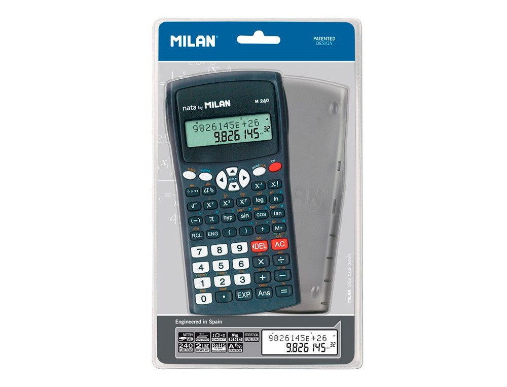 Calculadora milan cientifica m240 black 2 lineas 240 funciones 10+2 digitos color negra con tapa color gris