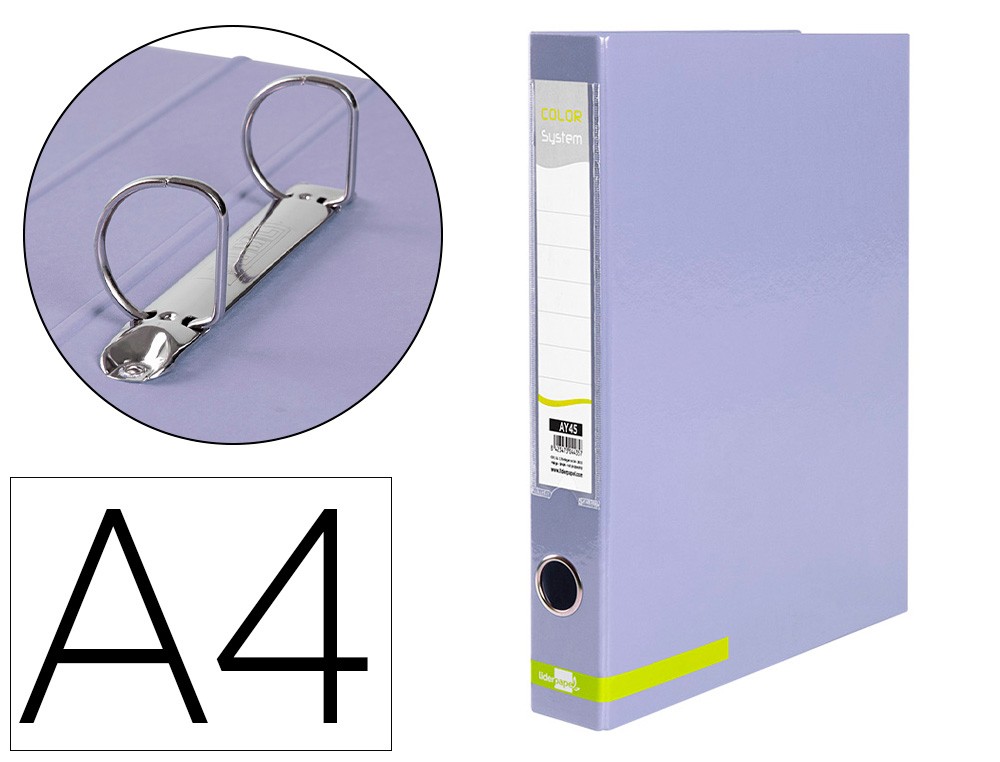 Carpeta de 2 anillas 25 mm mixtas liderpapel a4 forrado color system con ollao y tarjetero lavanda