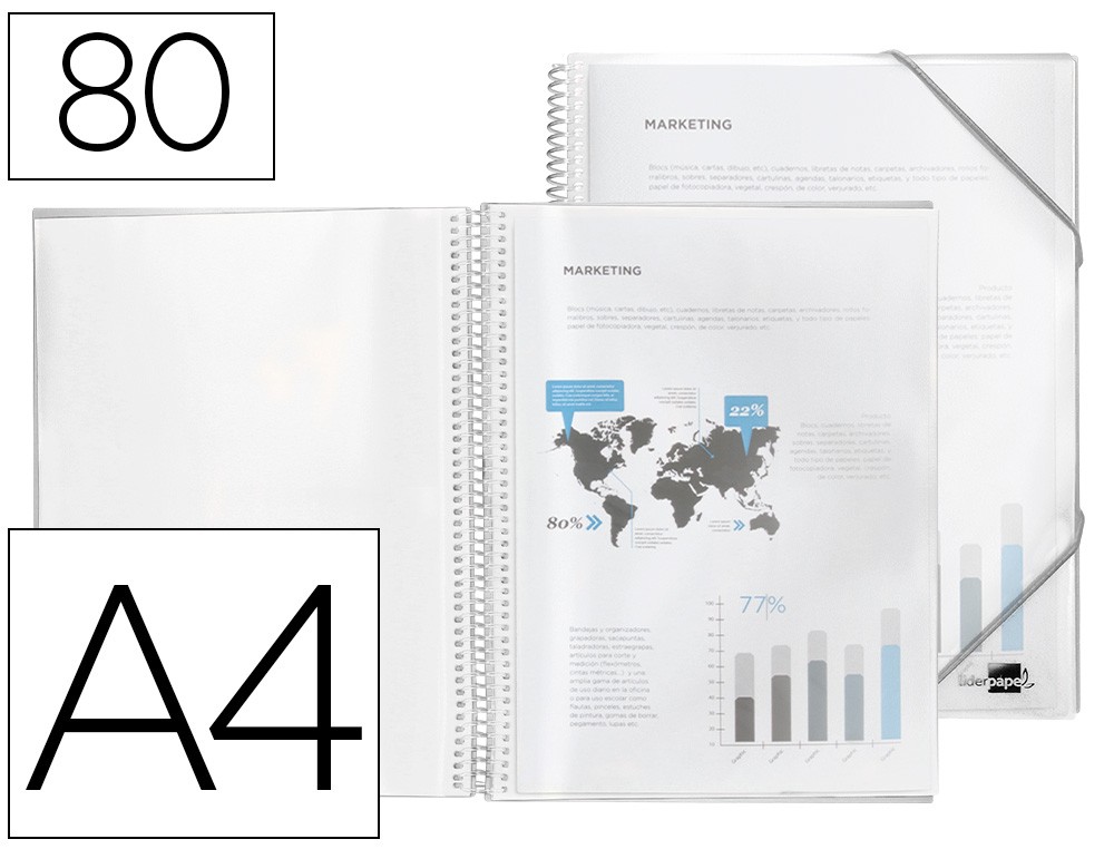 Carpeta liderpapel escaparate con espiral 80 fundas polipropileno din a4 transparente