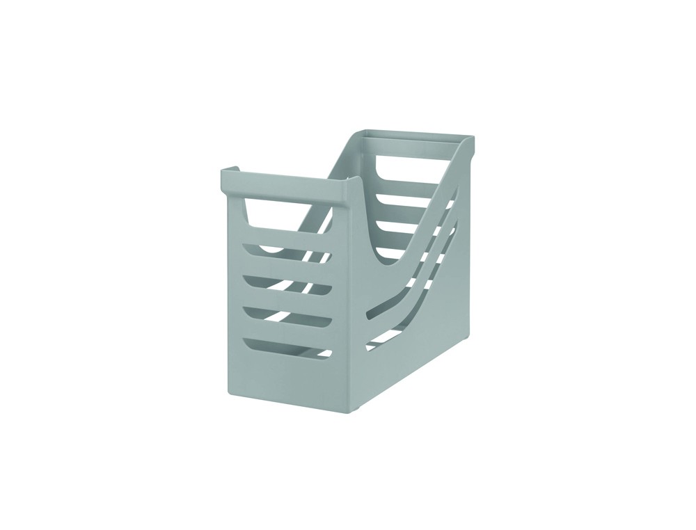 Caja de archivo reciclada, fácil de transportar con capacidad para 15 carpetas colgantes. Espacio para carpetas colgantes formato A4, sistema de almacenamiento de 330 mm. Fabricado en poliestireno 100% reciclado. Certificado Blue Angel. Color gris.