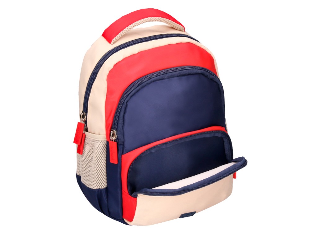 Cartera escolar liderpapel moc hila multibolsillo infantil azul marino rojo beige 350x110x270 mm