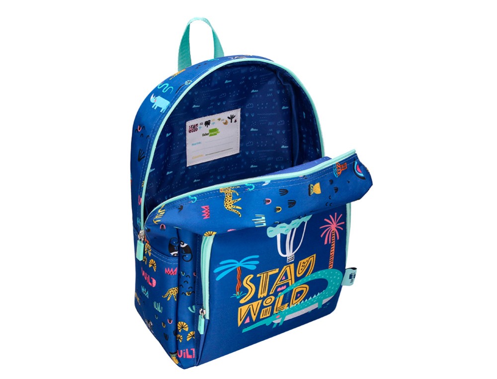 Cartera escolar liderpapel moc hila infantil safari diseño cocodrilo azul marino 330x100x250 mm