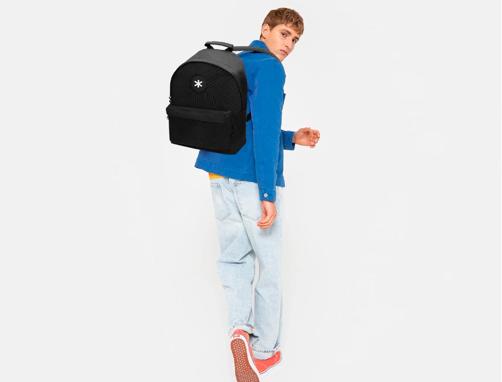 Mochila con 2 asas acolchadas y 1 bolsillo exterior. Práctica y resistente, espacioso compartimento principal ideal para transportar el material escolar y artículos personales. Parte trasera acolchada para mayor confort. Tirantes ajustables acolchados. Bolsillo interior para portátil de 14,1\". Bolsillo antirrobo de 180 x 150 mm. Medidas: 310 x 160 x 410 mm.