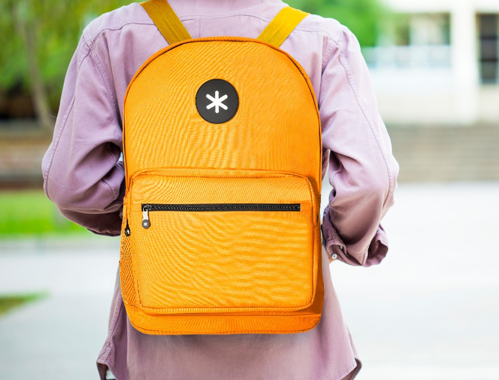 Cartera antartik mochila con asa y bolsillo frontal concremallera color mostaza 320x140x430 mm