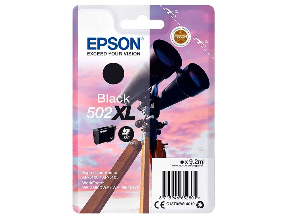 Ink-jet epson 502 xl expression home xp 5100 / 5105 workforce wf 2860 / 2860dwf negro 550 paginas