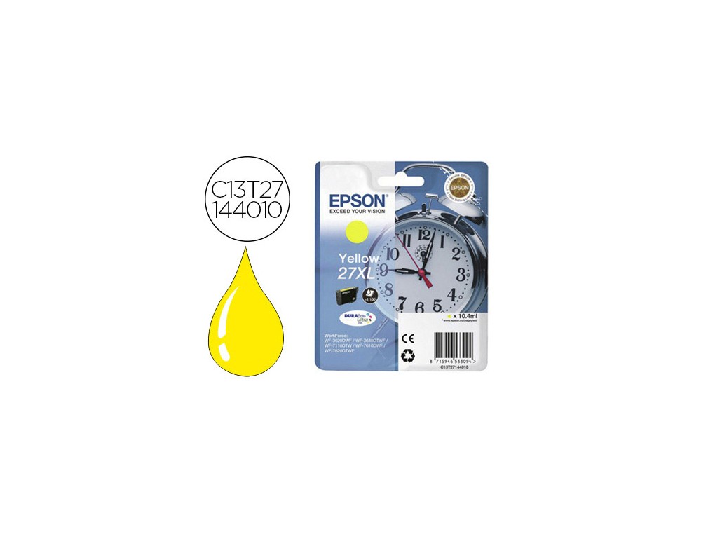 Ink-jet epson 27xl wf 3620 / 7110 / 7610 / 7620 amarillo 1.100 pag