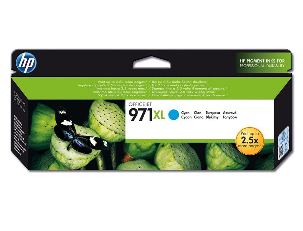 Ideal para impresión consistente y asequible de documentos en color de calidad profesional duraderos de cartuchos que son fáciles de instalar y con reciclaje gratuito. El cartucho de tinta cian HP 971XL Officejet produce documentos en color de calidad profesional con gran rentabilidad, a la vez que permite ahorrar tiempo a los grupos de trabajo creando impresiones consistentes y duraderas.