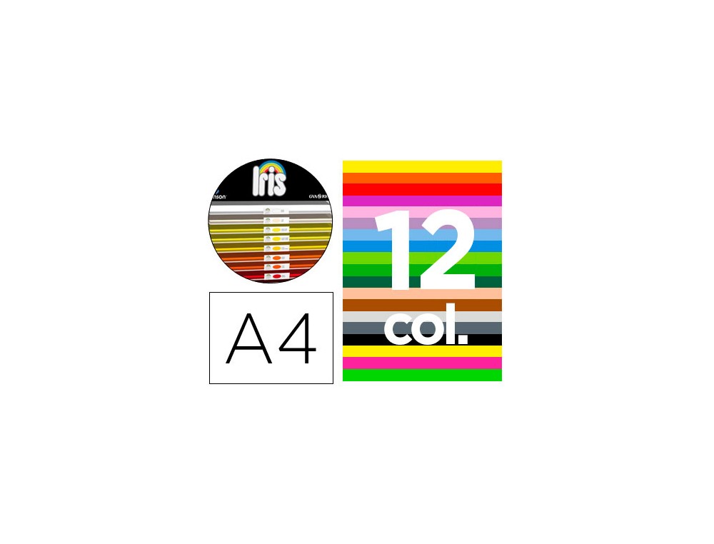 Cartulina Iris, libre de ácido, ligeramente satinada y coloreada en masa con pigmentos sólidos a la luz. Ofrece dureza y regularidad en su superficie. Se pega fácilmente con los pegamentos de uso escolar. Aplicación: Dibujo y manualidades. Disponible en formato A4 y 36 colores.