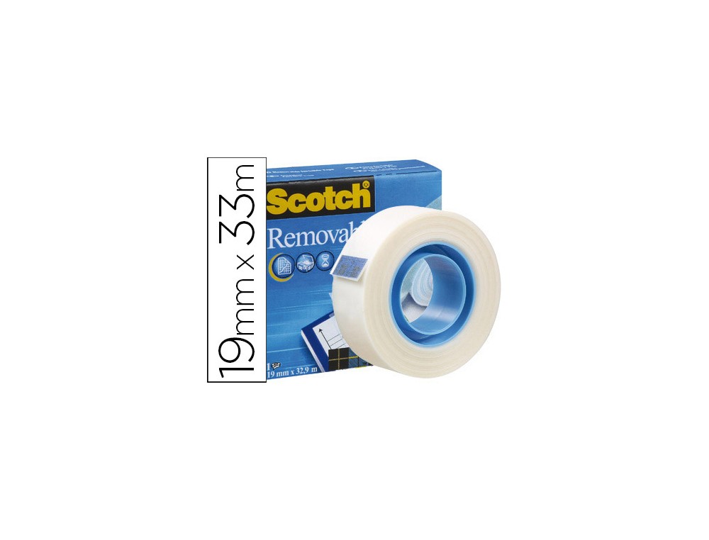 Con las mismas características que la cinta adhesiva Scotch®Magic , es excelente para realizar montajes o maquetaciones con la flexibilidad y tranquilidad de poder corregir cuando lo necesite porque se pega y despega con facilidad. Medidas: 33 m x 19 mm.