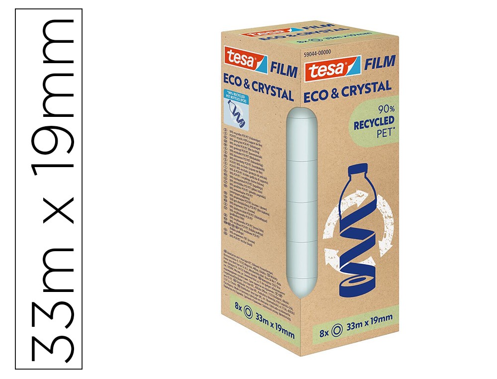Cinta adhesiva tesa film eco&cristal transparente 33 m x 19 mm pack de 8 unidades