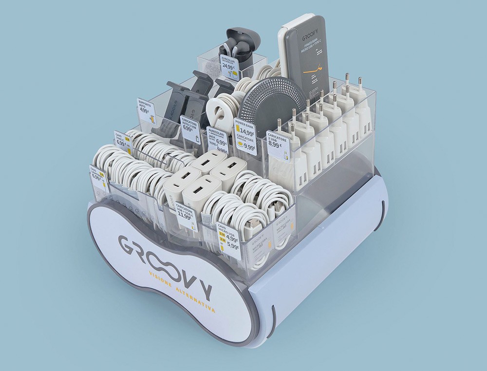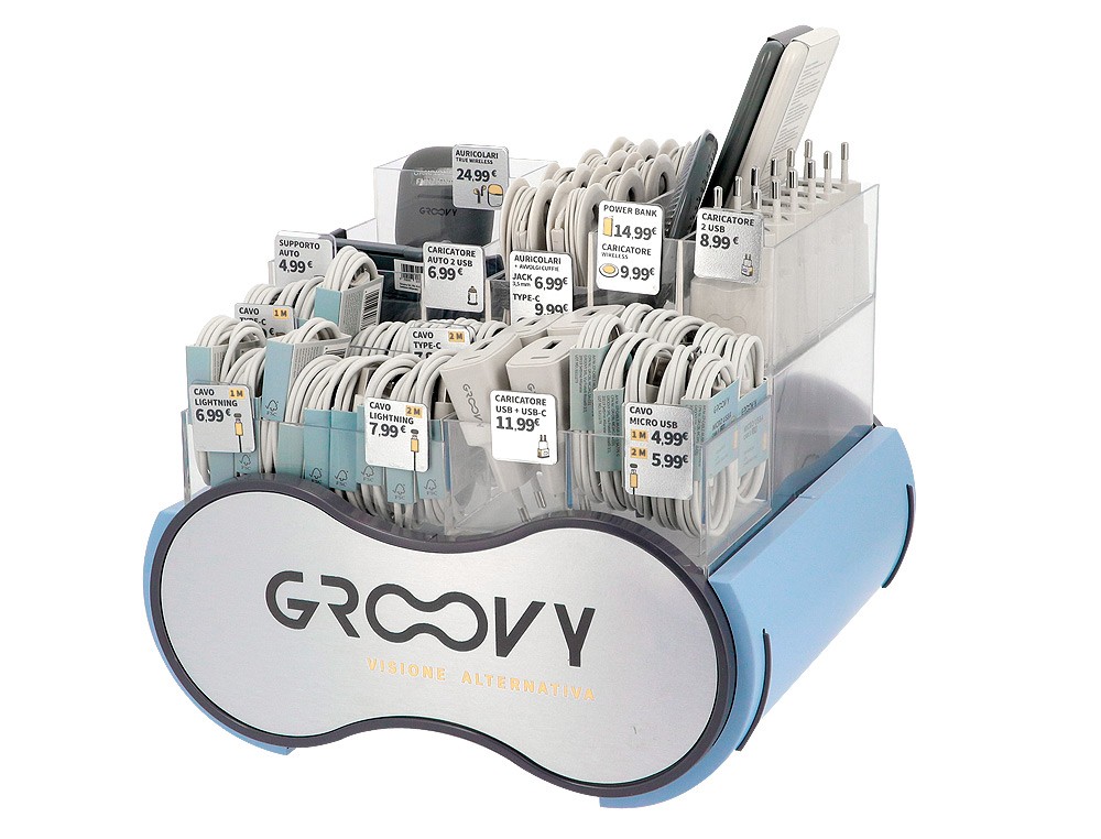 Expositor groovy sobremesa 62 piezas surtidas obsequio 1 auricular sport bluetooth neckband con microfono