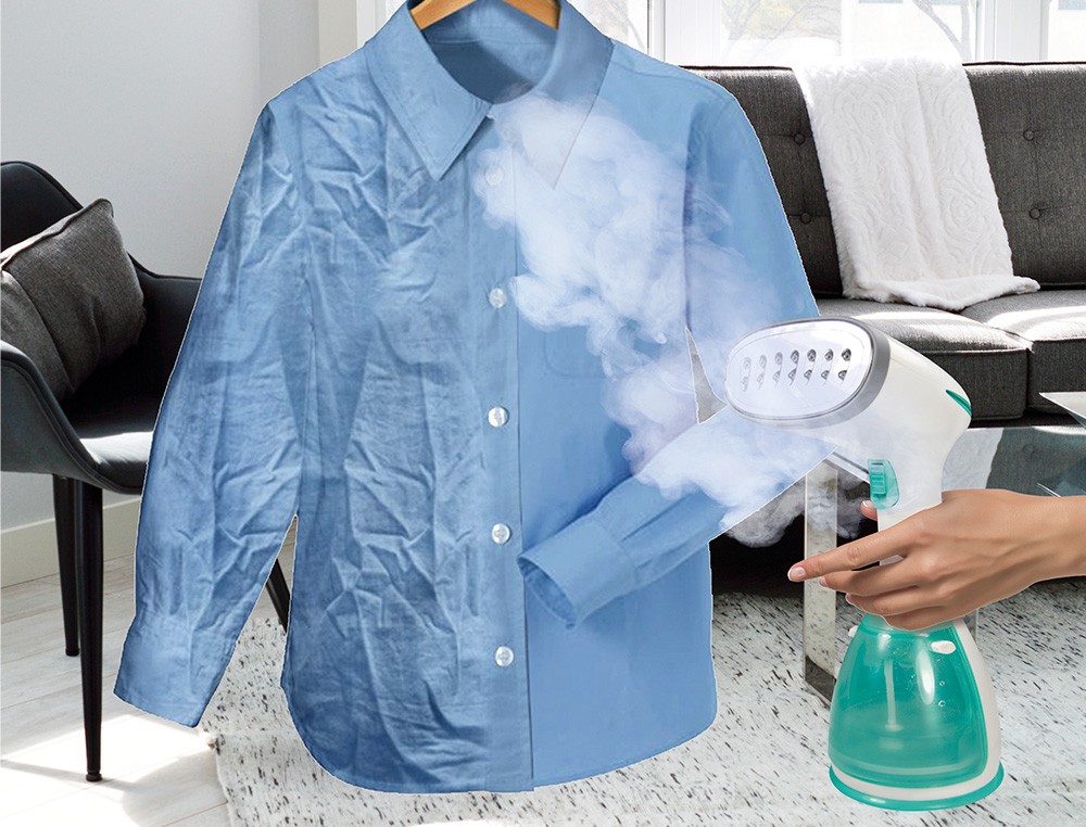 Plancha a vapor vertical. Sistema antigoteo. Perfecta para planchar prendas directamente en la percha. Botón de vapor continuo (25 gr/min). Indicador luminoso de encendido. Accesorios extraíbles: cepillo para ropa delicada y quita pelusas. Calentamiento rápido en 45 segundos. 1500 w. Depósito de 280 ml. Medidas: 170 x 290 x 120 mm.