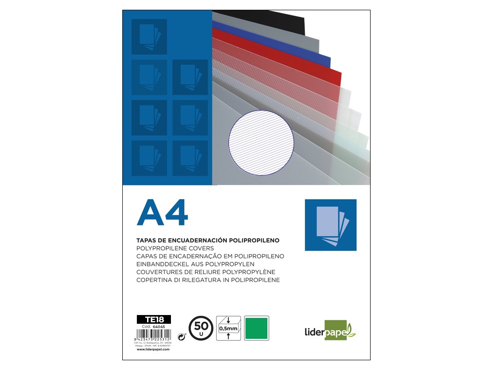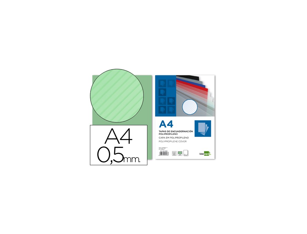 Tapa encuadernacion liderpapel polipropileno rayado a4 0.5mm verde paquete de 100 unidades