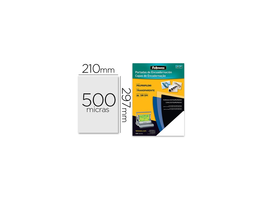 Tapa de encuadernacion fellowes din a4 polipropileno transparente 450 micras pack de 100 unidades