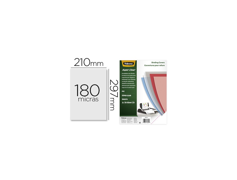Tapa de encuadernacion fellowes din a4 pvc transparente cristal 180 micras pack de 100 unidades